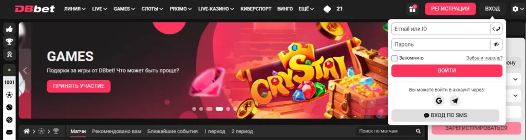 Вход в личный кабинет DBbet