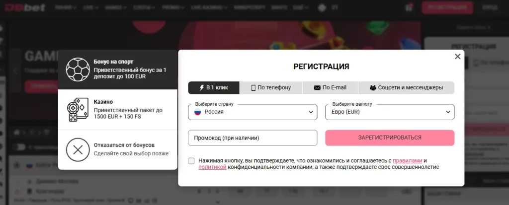 Регистрация на DBbet