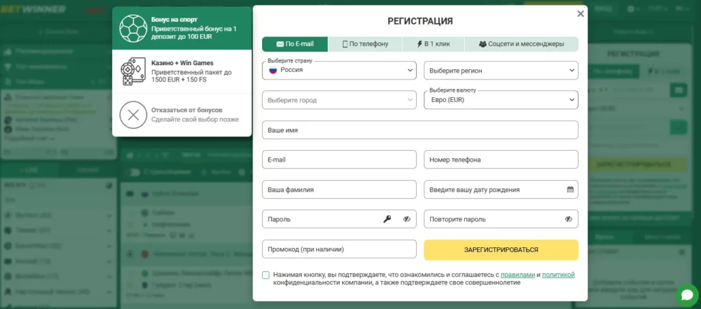Чтобы воспользоваться этим предложением, необходимо зарегистрироваться на сайте или в приложении Betwinner, подтвердить номер телефона и пополнить счёт.