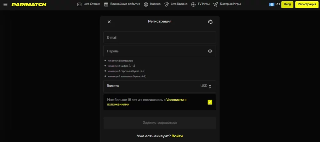 Процесс создания аккаунта на платформе Parimatch в Узбекистане занимает всего несколько минут и не требует особых усилий. Для начала нужно зайти на официальный сайт и нажать кнопку «Регистрация». Откроется форма, в которой необходимо указать: