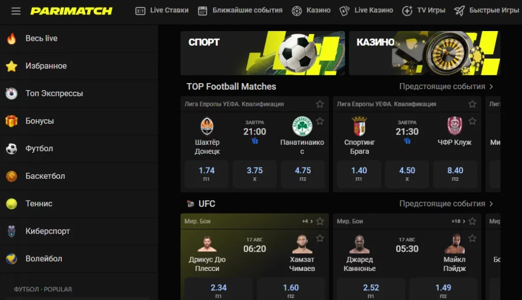 Одной из сильных сторон Parimatch является широкая и разнообразная линия ставок. Платформа предлагает ставки на около 25 видов спорта, включая не только популярные дисциплины, такие как футбол, теннис и баскетбол, но и более необычные варианты, например, политика, шоу-бизнес, лотереи и различные развлекательные события.