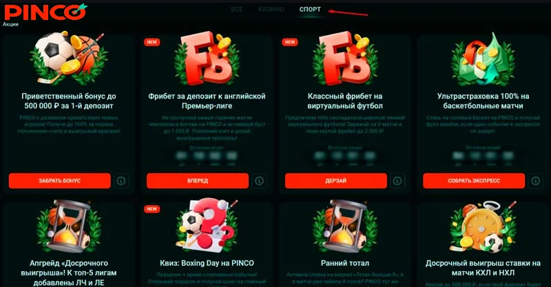 - Действующие бонусы и акции в Pinco Casino